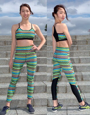 【スポーツブラ&カプリレギンス・セットアップRB/GG】上下セット/ヨガ/ウェア/水陸両用/カップ付ブラトップ/トップス/パンツ/ホット/ランニング/yoga/かわいい/おしゃれ/ダンス/スポーツ/フィットネス/衣装/レディース/エスニック